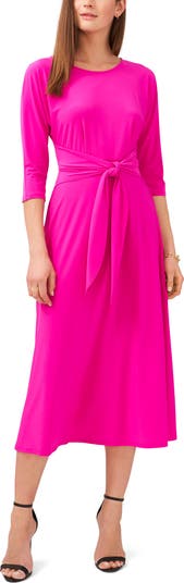 Move stylishly from desk to dinner in this curve-accentuating midi styled with a drapey tie belt and a flared A-line skirt.