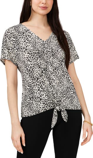 Capitalize on the tied-hem trend in the comfort of this V-neck top cut from a soft and stretch jersey for easy drape and ideal fit.