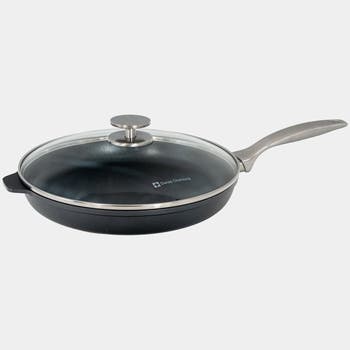 The Swiss Diamond CHD Nonstick Fry Pan, 11-Inch with Lid, is a versatile, large-capacity pan crafted in Switzerland for everyday cooking. Featuring a diamond-reinforced CHD nonstick surface and even-heating cast aluminum construction, it delivers reliable results for sautéing, searing, and family-sized meals. The included tempered glass lid helps retain heat and moisture while allowing you to monitor cooking.