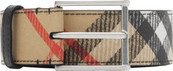 An Italian-made belt woven with the Burberry Check and lined in smooth leather. The top of the buckle has a subtle shield silhouette, inspired by our Equestrian Knight Design.||Hand-painted edges|Engraved Burberry lettering at buckle|Comes with a dust bag