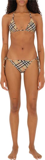 A halterneck bikini top in stretch nylon, printed with the Burberry Check. Comes with a matching drawstring bag. Part of Burberry Classics, wardrobe foundations with a unique Burberry slant. ||Removable padded cups