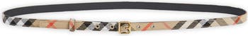 Check-patterned canvas brings Burberry's classic look to a slender belt lined in smooth calfskin and finished with a gleaming B-shaped buckle.
