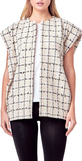 Update your layering possibilities with this trend-forward vest cut generously oversized from tactile ribbon tweed and shaped with padded shoulders.
