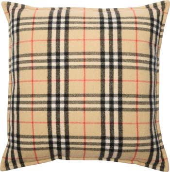 A cushion in cashmere, woven with the Burberry Check in seasonal oxblood red. Made in Scotland at a mill founded in 1797, the fabric is washed in local spring water and brushed for an ultra-soft finish.||Zip closure|Square