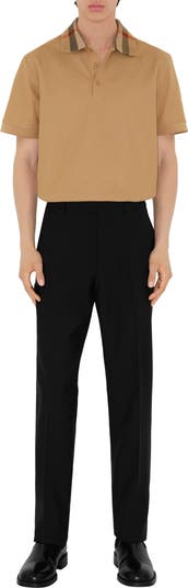 A polo shirt in cotton piqué with a knitted Burberry Check collar. The design is cut to a slim fit.||Button placket|Rib-knit cuffs