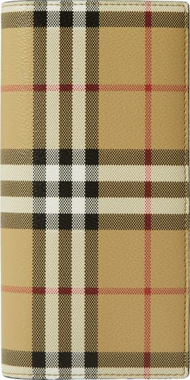 A continental wallet in Burberry Check. The design is lined in smooth calf leather and sized to fit all currencies. ||16 card slots|Zip compartment|Note compartment |Three slip pockets|Hand-painted edges|Polished metal hardware|Embossed Burberry lettering at inner