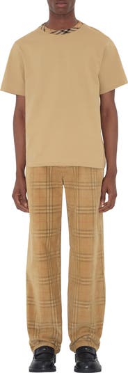 Trousers made in Italy from velvety cotton corduroy, woven with the Burberry Check and cut to a relaxed fit. The five-pocket style is detailed with diagonal belt loops and a suede patch embossed with the Equestrian Knight Design.