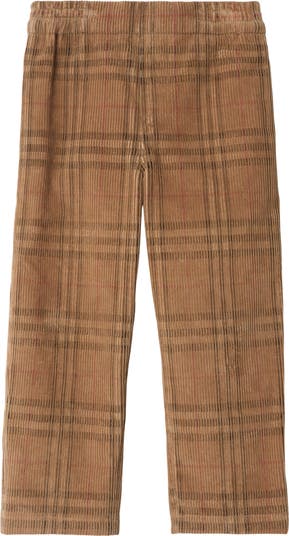 Straight-leg trousers made from Italian-woven cotton corduroy, printed with the Burberry Check.||Elasticated waist|Side slip pockets, back patch pocket