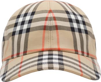 A classic baseball cap made in Italy from cotton woven with the Burberry Check in signature sand beige. ||Adjustable B buckle closure|Engraved Burberry lettering at buckle