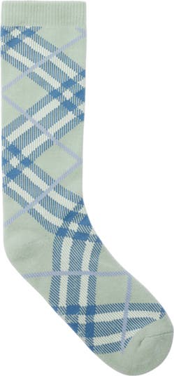 A pair of socks made in Italy from a cotton blend with a hint of stretch, jacquard-knitted with the Burberry Check in seasonal thicket green.