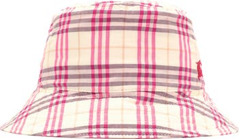A bucket hat crafted in Italy from soft cotton, woven with the Burberry Check in seasonal aubergine purple. The lightweight style is embroidered with a tonal Equestrian Knight Design.