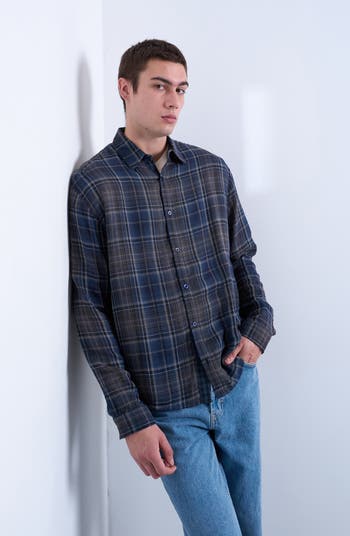 A timeless check pattern covers this soft, relaxed-fit cotton button-up that can be worn solo or layered into a look.
