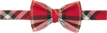 A classic bow tie in cotton flannel woven with the Burberry Check in seasonal poppy red. The design features an adjustable hook-and-clasp closure.