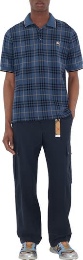 A polo shirt in cotton, jacquard-knitted with the Burberry Check. The design is cut to a relaxed fit and embroidered with our Equestrian Knight Design.||Button placket|Embroidered Equestrian Knight Design at chest