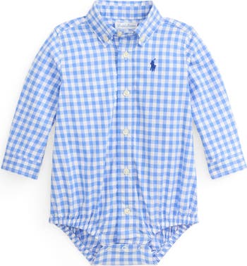Inspired by a classic Oxford button-down, this cotton-poplin bodysuit keeps baby looking their best with its check pattern, smart collar and signature logo.