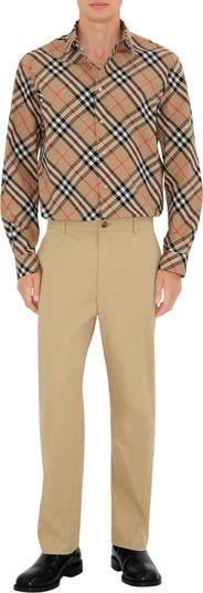 A long-sleeved shirt in cotton poplin, woven in Italy with the Burberry Check. The design is tailored to a regular fit. Part of Burberry Classics, wardrobe foundations with a unique Burberry slant.||Button closure|Point collar|Single-button cuffs|Curved hem