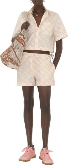 Pyjama shorts made from Italian-woven cotton patterned with a watercolour-effect Burberry Check. The design is cut to a regular fit and embroidered with our Equestrian Knight Design.||Button closure|Drawcord waist|Side slip pockets, back welt pocket|Embroidered Equestrian Knight Design at back