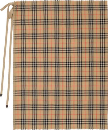 A lightweight cotton sarong, woven with the Burberry Check in signature sand beige. The design is secured with tonal ties featuring shield-shaped leather tabs – a nod to our Equestrian Knight Design.||Rectangular|Eyelash fringing at the edges