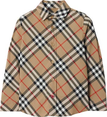A long-sleeved shirt in loop-back cotton woven with the Burberry Check. Part of Burberry Classics, wardrobe foundations with a unique Burberry slant.||Button closure|Point collar|Single-button cuffs|Curved hem