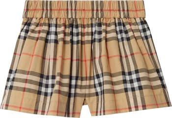 A pair of wide-leg shorts in cotton, gathered at the waist and woven with the Burberry Check in our signature sand beige colourway.||Elasticated waist|Side slip pockets