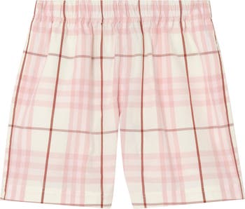 A pair of shorts in soft cotton, woven with the Burberry Check in seasonal flora pink.