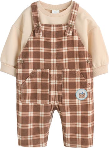 Get your little one ready to play in this supersoft cotton set featuring a relaxed-fit sweatshirt bodysuit that's paired with coordinating overalls made of corduroy.