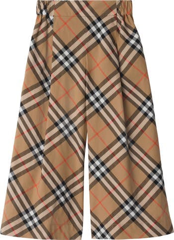 A pair of wide-leg trousers made from cotton and tailored with front pleats. The fabric is woven in Italy with the Burberry Check in a seasonal shell beige colourway.||Elasticated waist|Side slip pockets