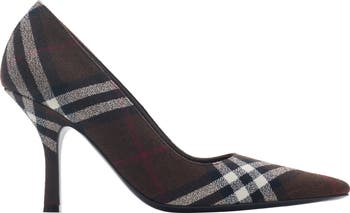 Point-toe pumps made in Italy from wool woven with the Burberry Check and set on a stiletto heel. The quilted leather insole is padded for comfort and the sole is embossed with the Equestrian Knight Design in signature Knight Blue.||Pointed toe|Quilted leather insole|Stiletto heel|Equestrian Knight Design at sole|Comes with a dust bag