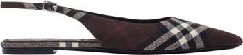 Point-toe slingback ballerinas made in Italy from wool woven with the Burberry Check in a seasonal mahogany brown. The style features an adjustable strap and a quilted insole for comfort.||Adjustable buckled strap|Pointed toe|Quilted insole|Engraved Burberry lettering at buckle|Equestrian Knight Design at sole|Comes with a dust bag