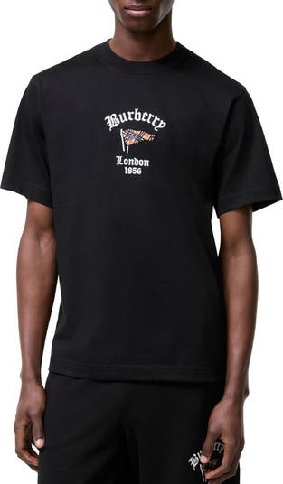 A crew-neck T-shirt in lightweight cotton jersey, cut to a relaxed fit. The design is embroidered with seasonal artwork depicting our logo and a Burberry Check flag featuring a contrasting Equestrian Knight Design.