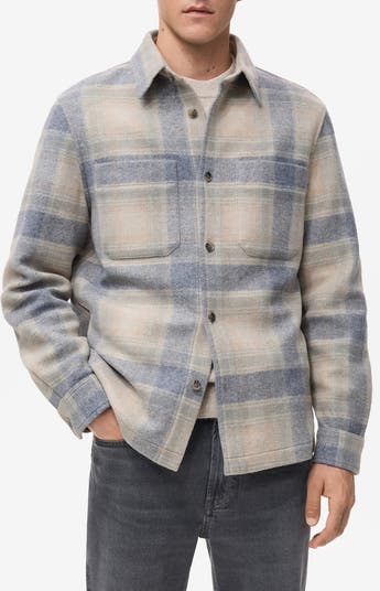 A classic check pattern textures this warm flannel shirt jacket designed with roomy chest patch pockets for practical storage.