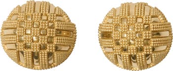 A pair of round gold-plated earrings made in Italy. Inspired by the ancient granulation technique, tiny spheres of metal are intricately soldered onto the base to form a tactile check pattern.||Engraved Burberry lettering at back|Pierced jewellery cannot be returned. This does not affect your statutory rights.|Comes with a dust bag