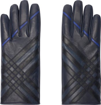 Gloves made in Italy from panels of leather, intricately cut and hand-stitched to form an intarsia Burberry Check. The design is lined in soft cashmere silk.