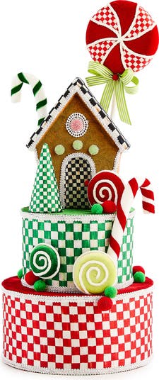 Top off your tree this year with this charming Gingerbread House decor designed with signature red and green checks and sweet gingerbread fabric that looks yummy enough to eat!