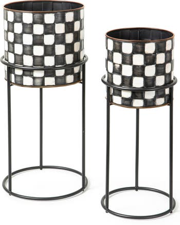 A pair of checked planters with stands invite you to show off (and easily tend to) container-gardening favorites, be they edible or elegant . . . or both.