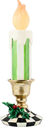 Bring some cheerful holiday glow to your home decor with this handmade illuminated candle decoration featuring a golden checkered candlestick base adorned with Christmas holly.