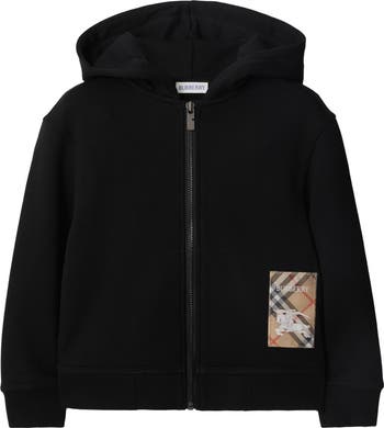 A zip hoodie in loop-back cotton. The style features an appliquéd patch woven with the Burberry Check, logo and Equestrian Knight Design. Part of Burberry Classics, wardrobe foundations with a unique Burberry slant.||Zip closure|Side slip pockets|Rib-knit trims|Appliquéd Burberry Check label at front