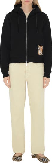 A zip hoodie in lightweight loop-back cotton. The style features an appliquéd patch woven with the Burberry Check, logo and Equestrian Knight Design. ||Zip closure|Drawstring hood|Pouch pockets |Rib-knit trims |Appliquéd Burberry Check label at pocket