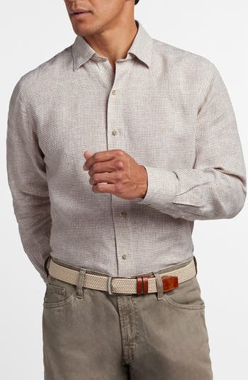 Fresh checks update this long-sleeve shirt cut from a lightweight linen fabric with a cool, breezy drape that's perfect with all your casual plans.