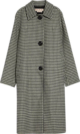 Put a refined finishing layer on cold-weather ensembles with this boldly checkered wool-felt coat cut in a longline, artfully oversized silhouette.