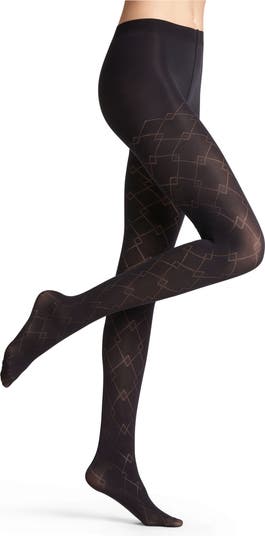 The brand's signature three-dimensional knitting process creates a comfortable fit for these sophisticated tights featuring a check pattern.