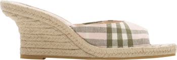The Mews espadrille mules are made from stretch linen, woven with the Burberry Check in seasonal mallow pink and lined in a matching material. The style is set on a wedge heel with a lightweight rubber sole embossed with our Equestrian Knight Design.||Almond-shaped toe|Quilted Burberry Check lining|Equestrian Knight Design at sole|Comes with a dust bag
