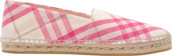 The Mews espadrilles are made from summery stretch linen, woven with the Burberry Check in seasonal mallow pink and lined in a matching material. The lightweight rubber sole is embossed with our Equestrian Knight Design.