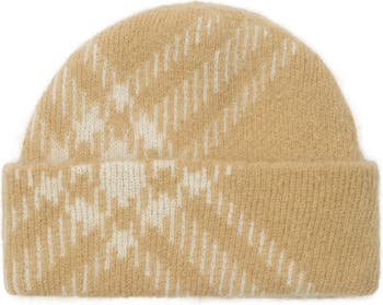 Burberry’s iconic checks are magnified to statement scale on this heavyweight beanie knit from a warm mohair-wool blend at a centuries-old Scottish mill.