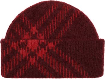 A beanie in a heavyweight mohair wool blend with a super-soft texture and chunky brim. The design is knitted with a seasonal check at a Scottish mill founded in 1797.