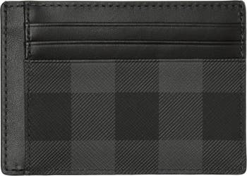 A card case in a cotton blend printed with the Burberry Check. The design is lined with smooth calf leather and finished with a money clip for notes.||Three card slots|Centre slip compartment|Two slip pockets|Hand-painted edges|Engraved Burberry lettering at clip|Comes with a dust bag
