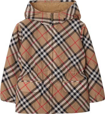 A hooded jacket in ripstop nylon, printed with the Burberry Check. The style has an elasticated waist and storm shield and closes with a B-cut zip pull.||Zip closure|Elasticated hood, waist and cuffs|Side press-stud flap pockets