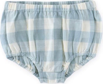 Made of breezy organic cotton, these check-patterned bloomers complete baby's look.