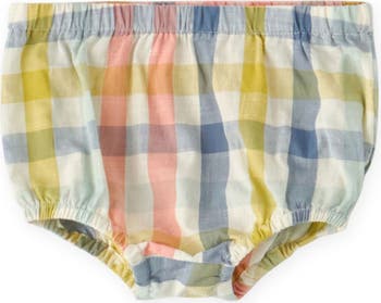 Made of breezy organic cotton, these check-patterned bloomers complete baby's look.