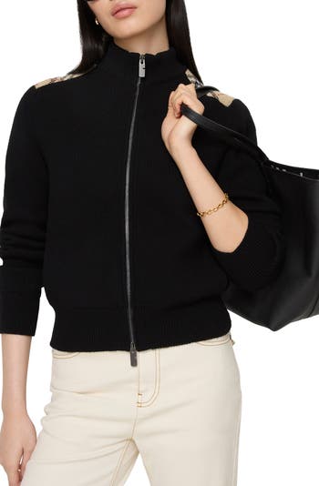 A funnel-neck cardigan knitted from wool cashmere. The regular-fit design is detailed with set-in Burberry Check epaulettes in our signature sand beige colourway.||Two-way zip closure|Side slip pockets|Rib-knit trims